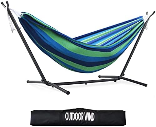 View full details550lbs Capacity Double Hammock Adjustable Hammock Bed with 10ft Heavy Duty Steel Stand Includes Portable Carrying Case, Easy Set up Blue/Green a