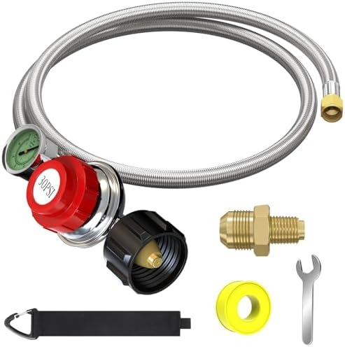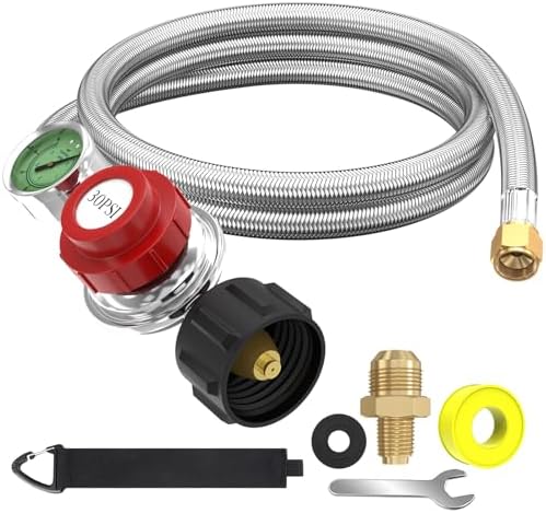 View full details5FT 0-30 PSI Adjustable High Pressure Propane Regulator with Gauge 0~60PSI Gas Flow Indicator QCC1 Stainless Propane Hose with 3/8 Flare x 1/8 MNPT Fits for LP Gas Cooker, Burner, Smoker, Turkey Fryer