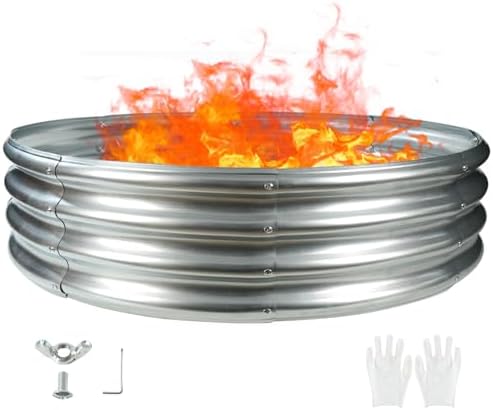 View full details5FT Diameter Camp Fire Ring Pit, Large Round Galvanized Steel Fire Pit, Heavy Duty Steel Fire Pit Silver for Backyard, Camping, Bonfire (5x5x1FT)