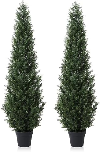 View full details5FT Artificial Cedar Topiary Trees for Outdoors Potted Fake Cypress Trees Faux Evergreen Plants for Home Porch Decor Set of 2