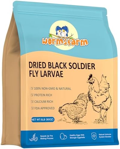 View full details5LB Non GMO Dried Black Soldier Fly Larvae for Chickens Bulk Treats More Calcium Than Dried Mealworms - BSF Larvae for Laying Hens, Chicken Worms, Poultry Grubs for Chickens Feed, Wild Bird Food