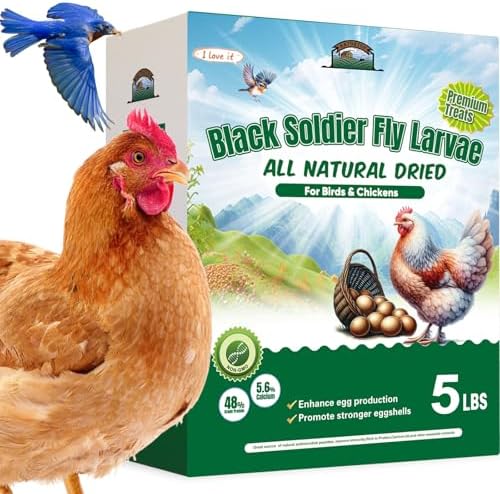 View full details5LB Dried Black Soldier Fly Larvae for Chicken– 85X More Calcium Grubs Than Mealworms for Strong Eggshells & Healthy Growth - High Protein for Chickens, Birds, Ducks, Geese & Pets