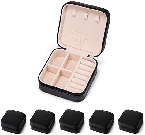 View full details5pack/PU Leather Travel Jewelry Case, Mini Jewelry Box, Small Jewelry Organizer Portable Display Storage Case for Rings Earrings Necklace Bracelet Bangle,Gifts for Girls Women (Black)