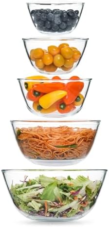 View full details5pc Glass Mixing Bowls Sets (4.65QT, 2.85QT, 2.11QT, 1.61QT, 1.16QT), Glass Nesting Kitchen Thick Bowl for Baking, Cooking Prep, Storage, Large Salad Bowls Sets-Dishwasher Microwave Freezer Safe