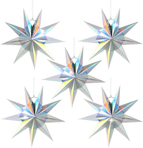 View full details5Pack 9-Pointed Paper Star Lanterns 11.8 Inch Iridescent Hanging Paper Lampshade for Winter Wonderland, Christmas Holiday, Weddings, Frozen Birthday Party Celebration Decor