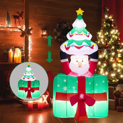 View full details6 FT Christmas Inflatables Outdoor Decorations Pop Up and Down Moving Santa Claus from Gift Box Holding Chrsitmas Tree, Blow Up Yard Decoration Built-in LED Lights for Party Lawn Decor