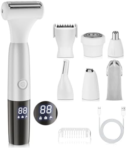 View full details6 in 1 Bikini Trimmer and Shaver Kit for Women, Wet/Dry Electric Body Hair Trimmer Facial Hair Removal Cordless Waterproof Bikini Shaver Razor for Face Nose Eyebrow Arm Leg Pubic Armpit Bikini