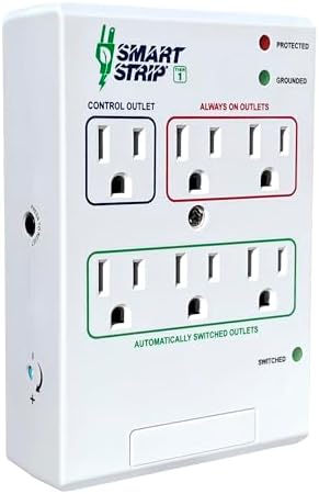 6 Outlet Energy Saving Wall Mounted Power Strip and Surge Protector, Automatically Off/On Functions