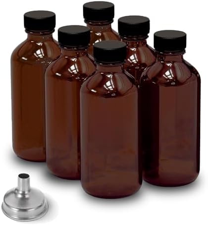 View full details6 Pack 2oz Amber Glass Bottles for Vanilla Extract, Boston Round Leak-Proof Brown Glass Jars with Caps, Bonus Funnel - Ideal for Homemade Extracts, Essential Oils, DIY Christmas Party Gift Supplies