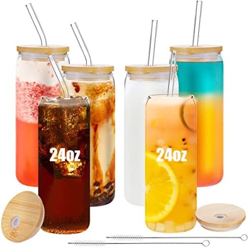 PACKAGE INCLUDE: 24oz/720ml drinking glasses,6PCS can shaped glass cups;6PCS bamboo lids;3PCS glass straight straws;3PCS glass bending straws;2P...
