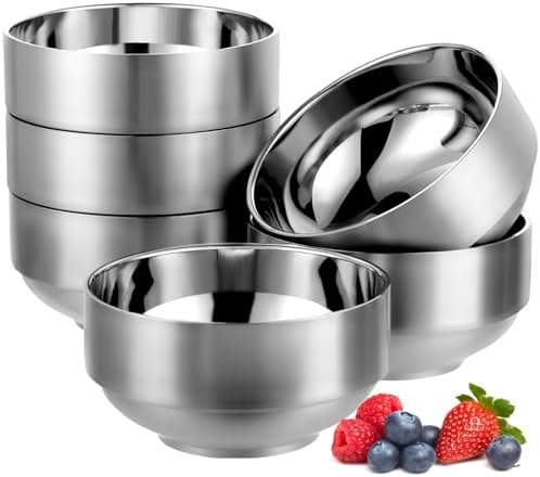 View full details6 Pack 12 Oz Stainless Steel Bowls for Kids, Insulated Soup Bowl, 18/8 Small Metal Serving Eating Bowls for Cereal, Rice, Ice Cream, Snack, Hot and Cold Food, Salad