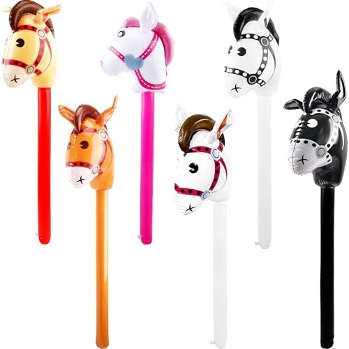 6 pack 40 Inch Inflatable Horse Stick Cute Horsehead Stick Balloon Colorful Inflatable Horsehead Stick Blow Up Pony Stick Toys for Christmas Cowboy Cowgirl Horse Theme Party Decor (Color Set 1)
