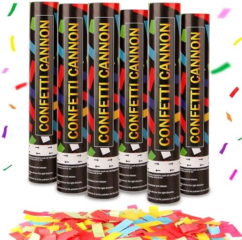 View full details6 Pack 12 Inch Confetti Cannon Multicolor Confetti Popper Party Shooter for Wedding Birthday Graduation Celebration, These Pack of 6 Confetti cannon with Biodegradable Paper Launches 16 ft
