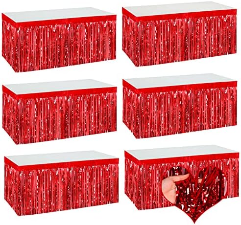 View full details6 Pack 29x108 Inch Red Metallic Foil Fringe Table Skirts Banner for Tinsel Streamer Garland Curtains Backdrop for Parade Floats Wedding Baby Shower Birthday Christmas Halloween Party Decoration