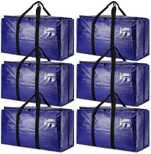 View full details6 Pack Moving Bags Heavy Duty, Extra Large Storage Totes Bag with Zippers and Sturdy Handles, Packing Bags for Moving, Storage, Travel, Space Saving, Moving Boxes College Essentials Blue