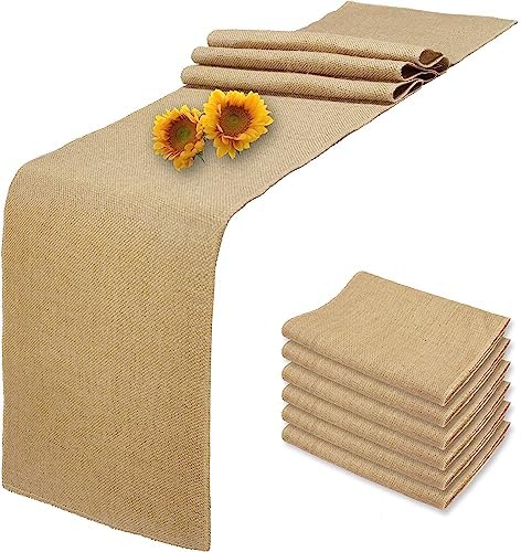 View full details6 Pack Natural Burlap Table Runners,12 x 72 Inch Rustic Jute Table Runner and Placemats Bulk for Western Wedding Table Decorations,Farmhouse Style Party,Holiday,Kitchen Coffee Table Decor Cover