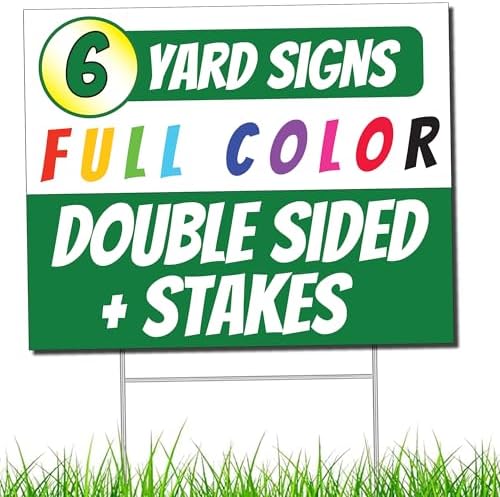 View full details6 Pack of 24x18 inch Custom Yard Signs with Steel H Stakes, Weatherproof Personalized Printing, Printed Full Color on Both Sides