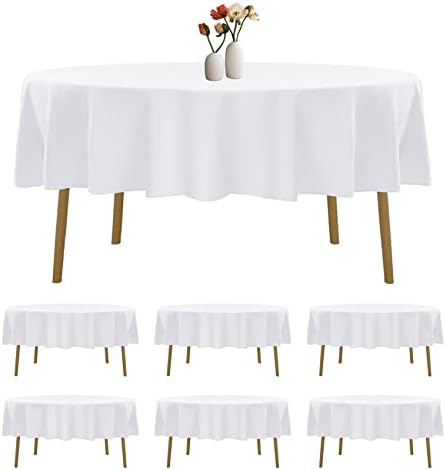 View full details6 Pack Round Tablecloth 90 Inches White Table Cloth Stain and Wrinkle Resistant Washable Polyester Fabric Table Cover for Party, Wedding and Banquet Decoration
