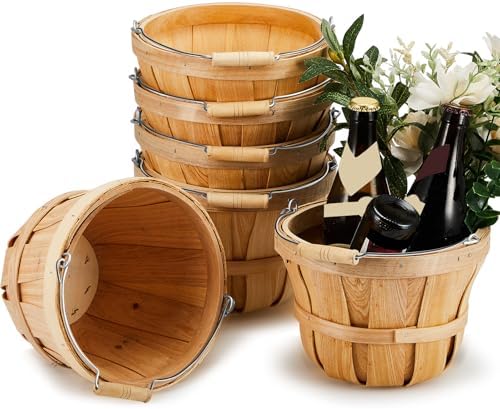 View full details6 Pack Round Wooden Fruit Baskets Small Bushel Apple Buckets with Handle Display Buckets for Gifts Empty Thanksgiving Fall Christmas Winter Basket for Fruits Vegetables, Home Party Supplies