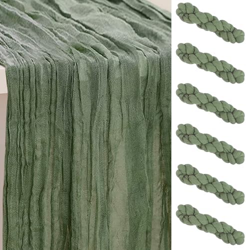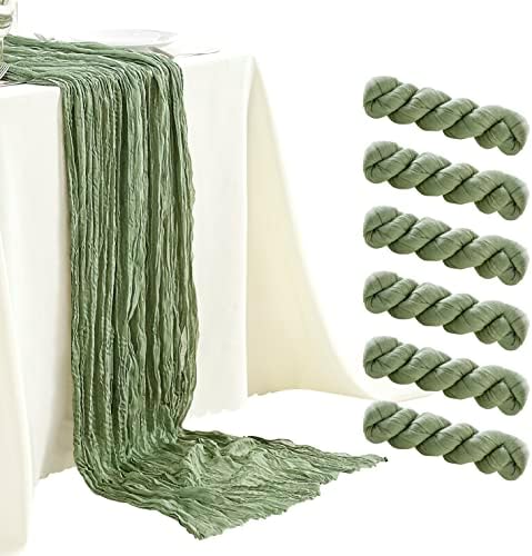 View full details6 Pack Sage Green Cheesecloth Table Runner 35 x 120 inch Boho Rustic Gauze Table Runner 10 FT Long, Semi Sheer Cheese Cloth Runner for Wedding Party Banquet Baby Shower Birthday Decoration