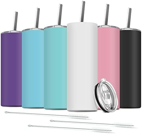 View full details6 Pack Stainless Steel Skinny Tumbler, 20 OZ Double-Insulated Water Tumbler Cup with 6 Straw and 3 Brush, Vacuum Travel Mug Gift for Hot Cold Drinks with Cleaning(Assorted Colors)