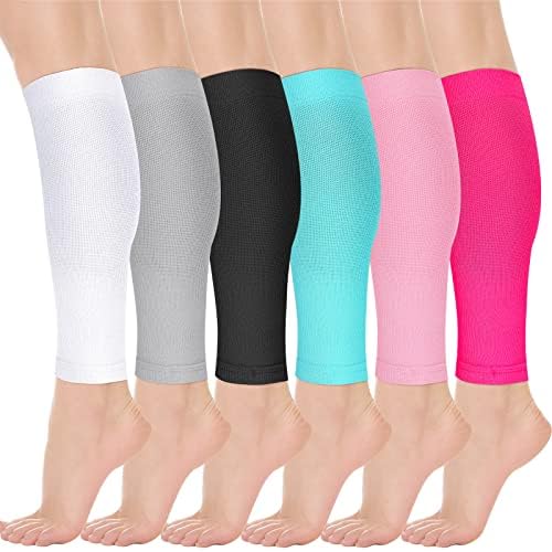 6 Pairs Calf Compression Sleeve Women Footless Compression Stockings Elastic Leg Sleeve for Running Nurse Pregnant (Small)