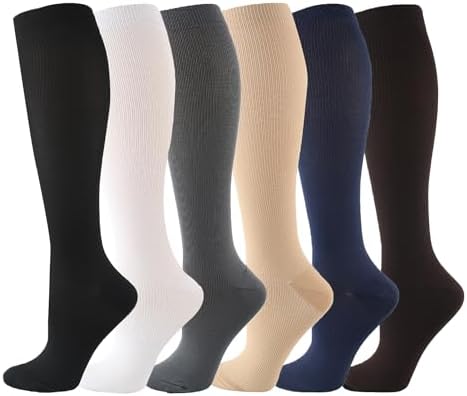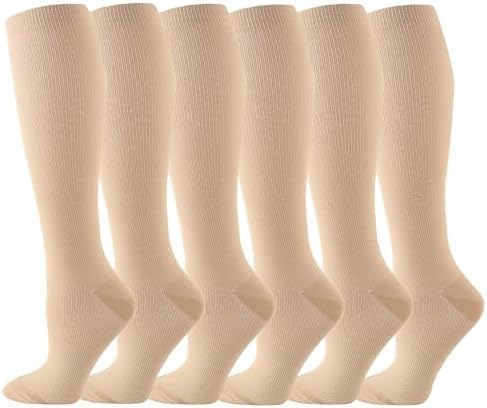 6 Pairs Compression Socks for Women and Men Circulation, 20-30 mmhg Socks for Athletic Running,Hiking,Nurse,Recovery
