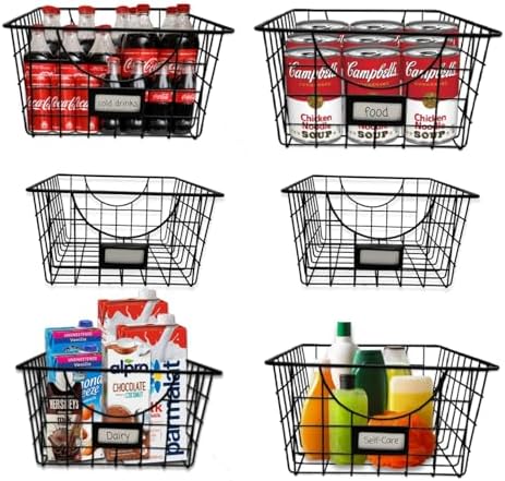 View full details6 Pack[ Extra Large] Wire Storage Baskets for Pantry Including 12 S Hooks, Pantry Organization Bins for Cabinets with 3 Size Metal Basket for Kitchen, Countertop of Kitchen and Bathroom,black baskets