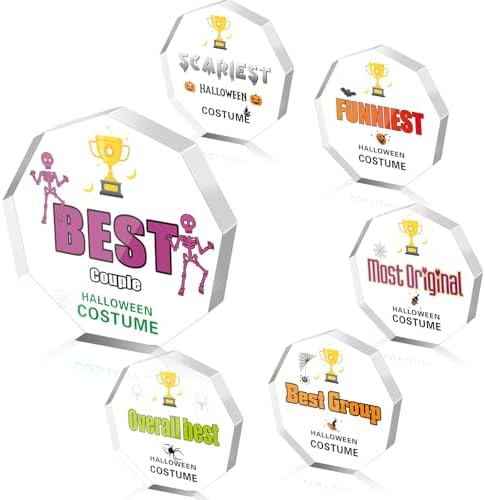 View full details6 Pcs Acrylic Trophy Contest Award Halloween Costume Awards Funny Cute Personalized Trophy Bulk Prizes Medals for Adults Kids Halloween Costume Contest Christmas School