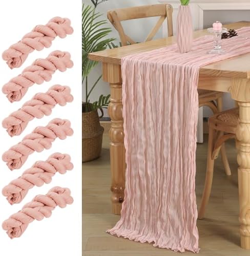 View full details6 Pcs 10 FT Dusty Pink Cheesecloth Table Runner, 120 Inch Boho Cheese Cloth Table Runners for Bridal Shower Wedding Table Decor Baby Shower Decorations for Party