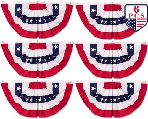 View full details6 PCS 4th of July Decorations Outdoor, 1.5 x 3 FT American Flag Banner, Patriotic Bunting USA Pleated Fan Flags US Half Fan Flag Independence Day Memorial Day Outside Home Decor for Yard Fence