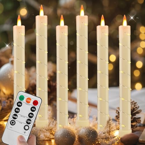View full details6 Pcs Flameless Taper Candles, Battery Taper Candles Flickering Flame with Embedded Star String, Candle Sticks Battery Powered with Remote Control, Timer Function Ideal for Christmas (Ivory)