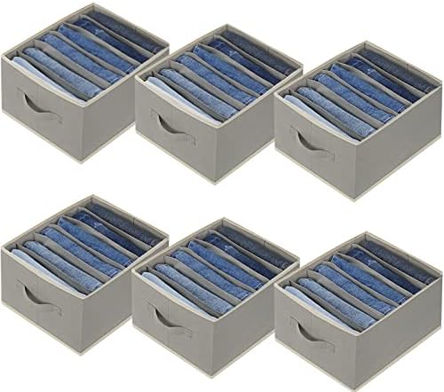 View full details6 Pcs Large Size Wardrobe Clothes Organizers 6 Grids for Pants, Jeans, Sweater, T-shirt, Thin Coat, Dress Stackable Closet Drawer Organizer Storage Bin Container with Sturdy Handles, Grey