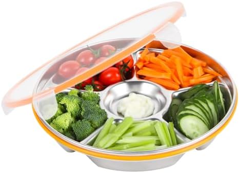 View full details6-Compartment Stainless Steel Serving Tray with Lid - 10-inch Divided Snack/Vegetable/Fruit Tray for Christmas Parties, Snackle Box & Platter Container