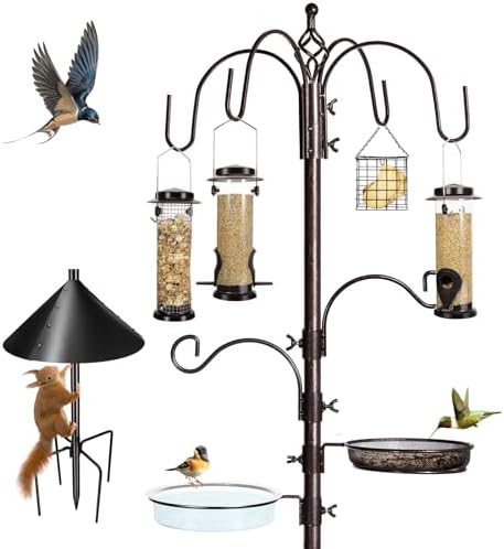 View full details6-Hook Bird Feeding Station Kit, 94 Inch Heavy Duty Bird Feeder Stand Pole for Outdoors Hanging with 4 Feeders, Wide Metal Squirrel Baffle, Attracting Wild Birds