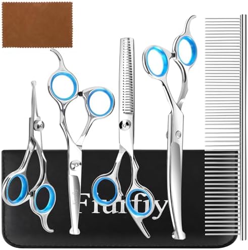 Complete 6-in-1 Grooming Set: This grooming kit includes 1 thinning scissor, 1 curved scissor, 2 straight scissors, 1 grooming comb and 1 storag...