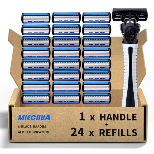 Miechua razors for men Includes one 6-Blade Razors handle and 24 refill cartridges. The pivoting head constantly maintains close contact wit...