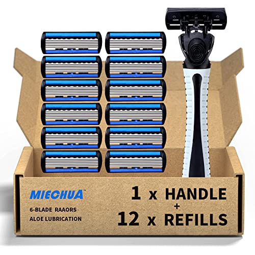 Miechua razors for men Includes one 6-Blade Razors handle and 12 refill cartridges The pivoting head constantly maintains close contact with...
