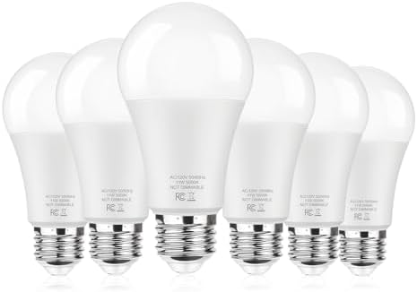 View full details6-Pack A19 LED Light Bulbs, 100W Equivalent 5000K Daylight White LED Bulb, Super Bright 11W 1400 Lumens, E26 Standard Medium Base, No Flicker Non-Dimmable, Lighting for Bedroom Living Room Home Office