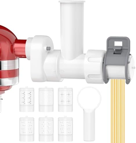 View full details6-in-1 Pasta Maker Attachment for KitchenAid Stand Mixers with 6 Different Shapes Pasta Outlet and Cleaning Brush, Durable Electric Pasta Press Attachments for Kitchen Aid Accessories, Dishwasher Safe