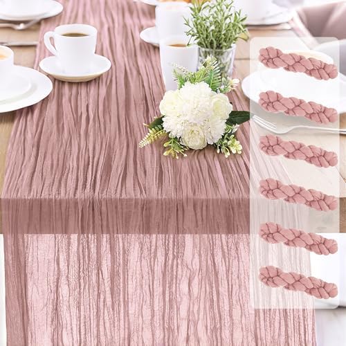 View full details6-Pack Dusty Pink Cheesecloth Table Runners – 10FT (35x120 Inch) Boho Rustic Gauze Fabric Cheese Cloth Table Runner for Weddings, Baby Showers, Bridal Shower, Farmhouse & Birthday Party Decor