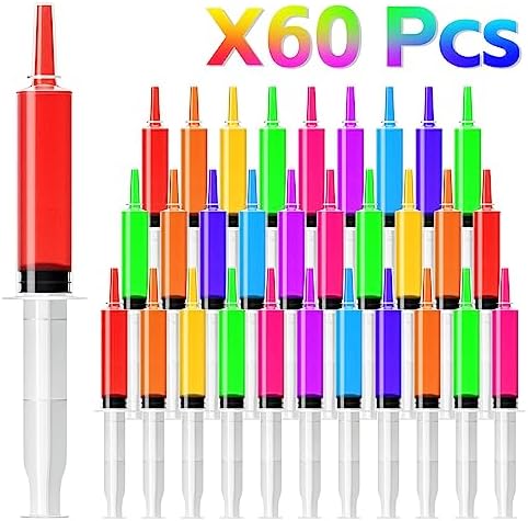 View full details60 PACK 2 oz Party Jelly Syringes Shot, BPA Free, Washable, Durable Big Springe for Jelly Shot for Halloween, Thanksgiving Day, Christmas Bachelorette Parties