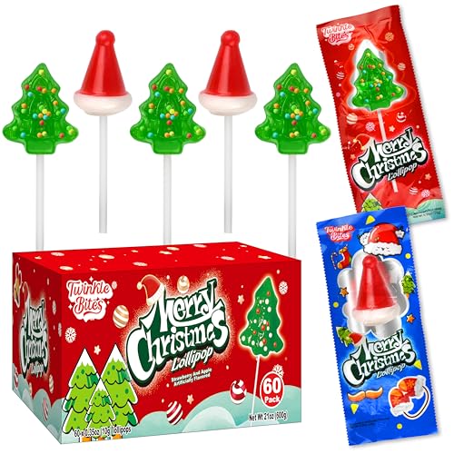 View full details60 Pack Christmas Lollipops - Individually Wrapped Christmas Holiday Themed Hat And Tree Lollipops - Colorful Red & Green Designs & Delicious Flavor -Bulk Candy Use For Stocking Stuffers, Party Favor, Classroom & Office Treats, Candy Jar Fillers