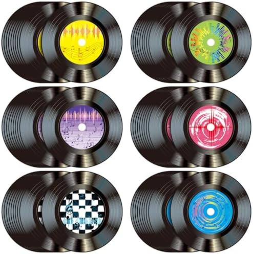 1950's Rock and Roll Vinyl Record Placemat: you will receive 60 pieces of vinyl record vintage placemats in 6 styles, each style with 10 pieces,...