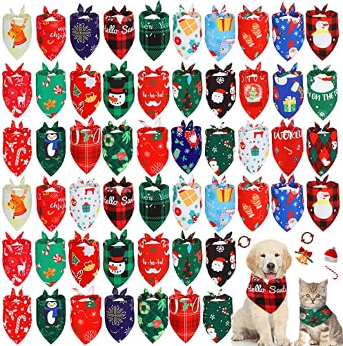 View full details60 Pcs Christmas Dog Bandanas Bulk Xmas Cat Bibs Adjustable Dog Bibs Triangle Scarf Holiday Pet Costume for Small to Large Pet (Santa Pattern)