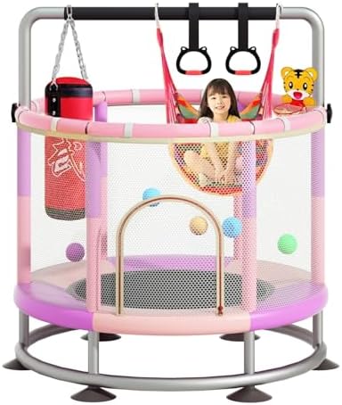 View full details60" Trampoline for Kids, Anti-Rollover Round Bottom Baby Toddler Trampoline with Basketball Hoop, Indoor/Outdoor Kid MiniTrampoline with Enclosure Net, Children's Gift for Halloween, Christmas