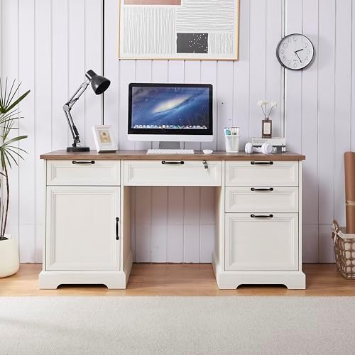 View full details60" Farmhouse Executive Desk with Charging Station,Home Office Desk with 4 Drawers & 1 Cabinet&1 File Cabinet,Main Drawer with Lock,Wood Desk for Office and Home