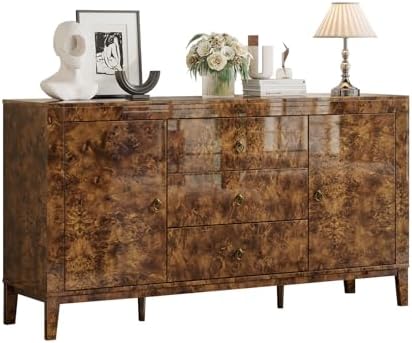 View full details60'' Burl Wood Buffet Sideboard, High Gloss Storage Cabinet with 3 Drawers & 2 Closed Cabinets, Mid-Century Modern Buffet Table for Dining Room Living Room, Dark Brown Burl
