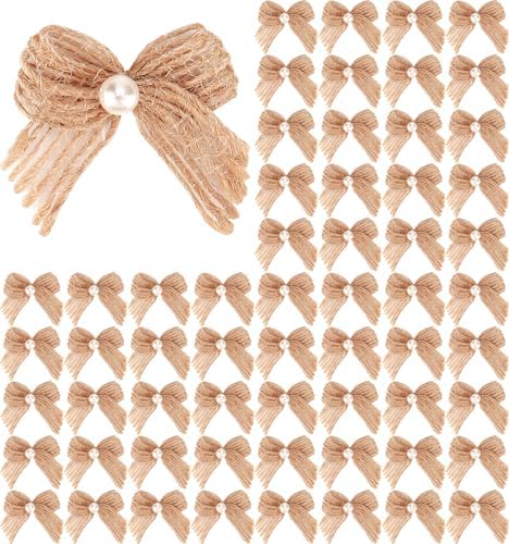 View full details60pcs Mini Burlap Ribbon Bows with Pearl 1 Inch Colored Craft Bows Flowers Appliques DIY Craft for Sewing, Scrapbooking, Wedding, Gift,Christmas Decoration (Linen)