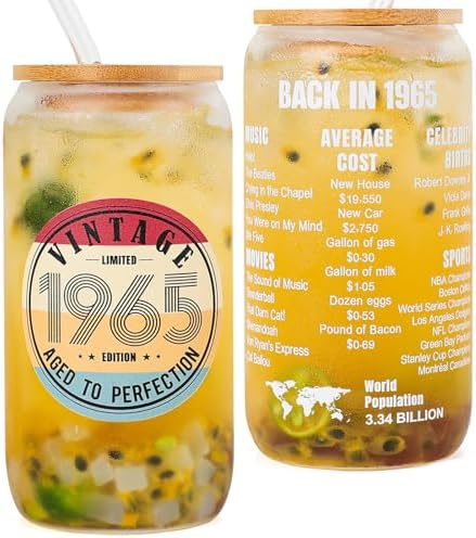 View full details60th Birthday Gifts for Women - 1965 60th Birthday Gifts for Her Him Men 60 Year Old Birthday Decorations Gift for Women Mom Wife Turning 60 Gift Glass Cup with Straw